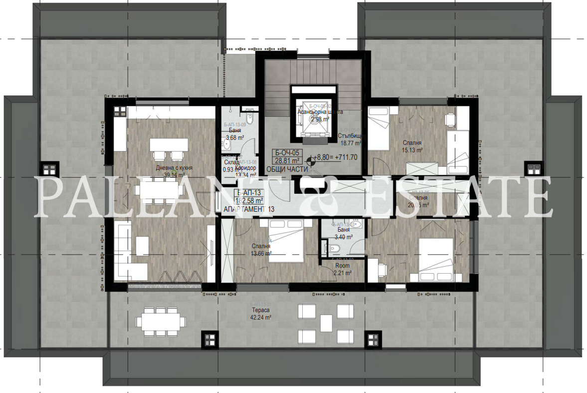 Three rooms apartment     Б   1   4   112.66 sq. m.   0.00 sq. m.   0.00 sq. m.   Unfurnished   2244.45 EUR / кв.м 252 860 EUR