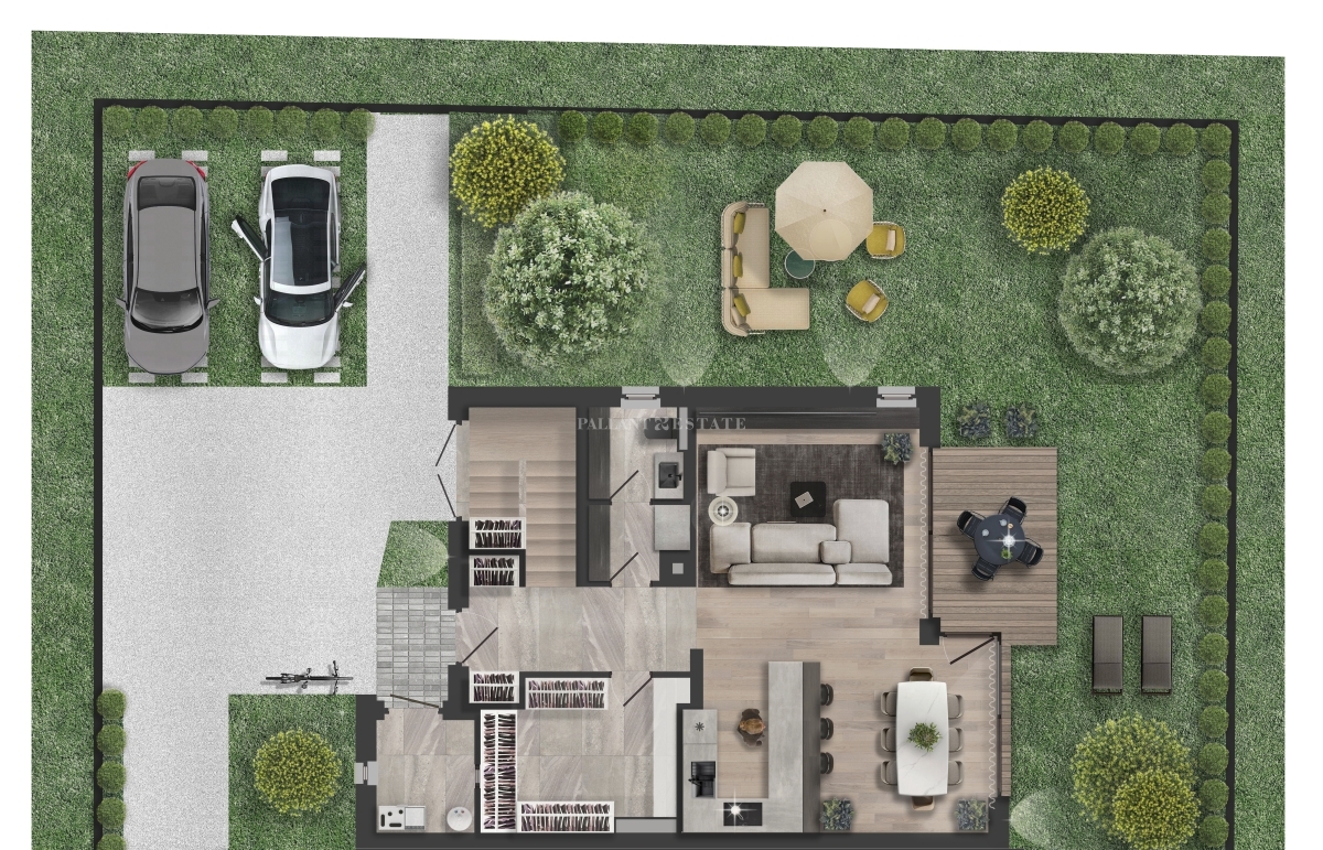 Each house comes with a private landscaped yard from the developer. Three houses feature yards ranging from 42 to 43 sq.m, while the fourth boasts a spacious yard of 74 sq.m.