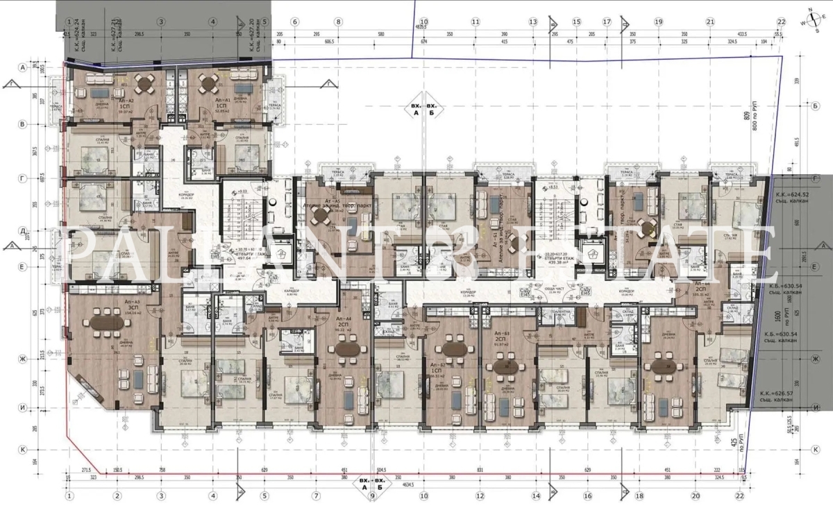 | ID | Property type | Exposure | Entrance | Floor | number | Total area | Residential area size from | Common parts of the property | Furnishing | Price per sq.m. | Price |