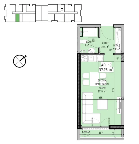 One-room apartment     A   1   A-01   35.61 sq. m.   31.44 sq. m.   4.17 sq. m.     2079.98 EUR / кв.м 74 068 EUR