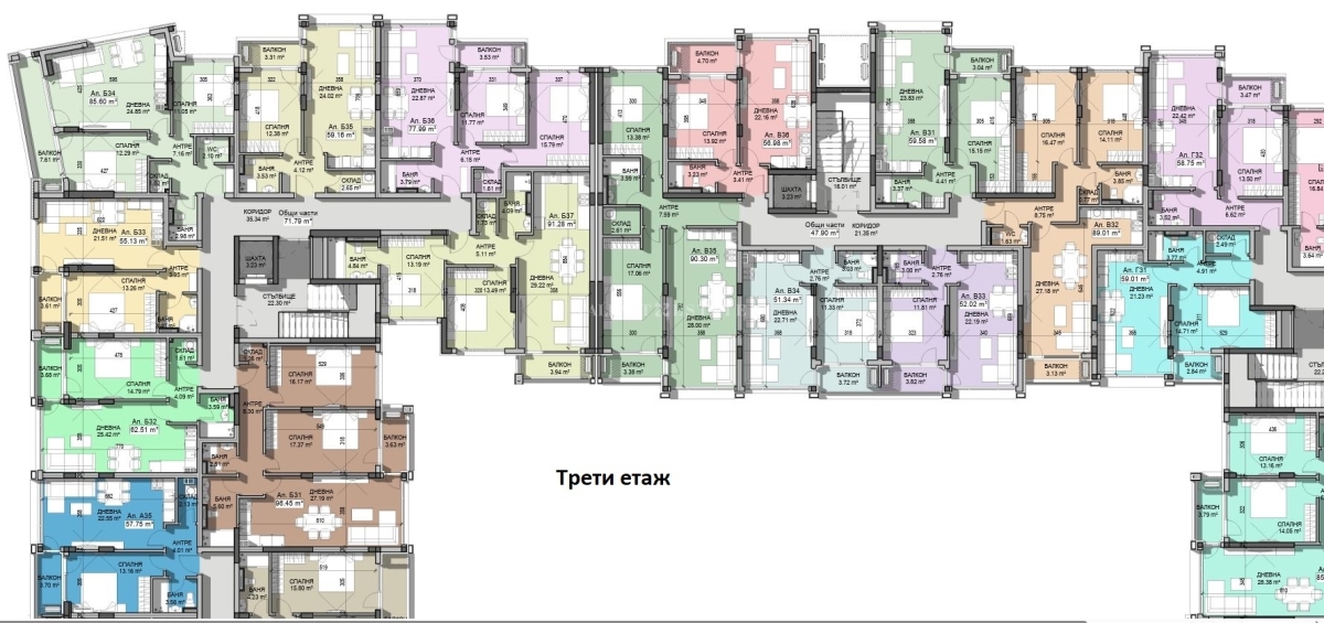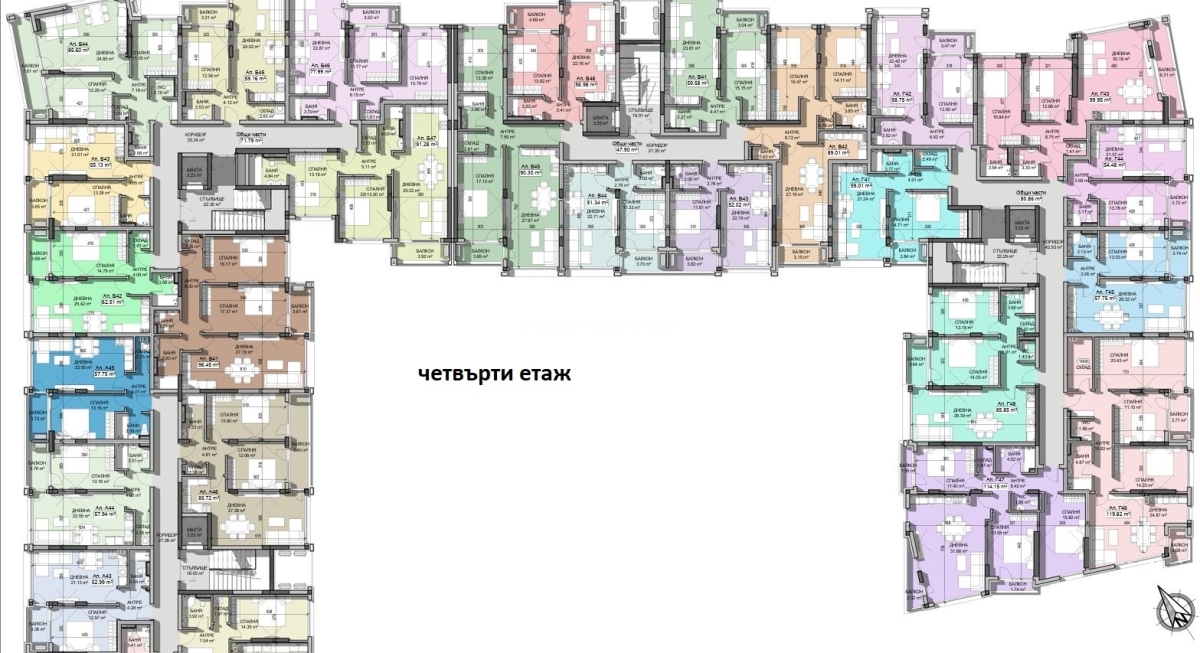 | ID | Property type | Exposure | Entrance | Floor | number | Total area | Residential area size from | Common parts of the property | Furnishing | Price per sq.m. | Price |