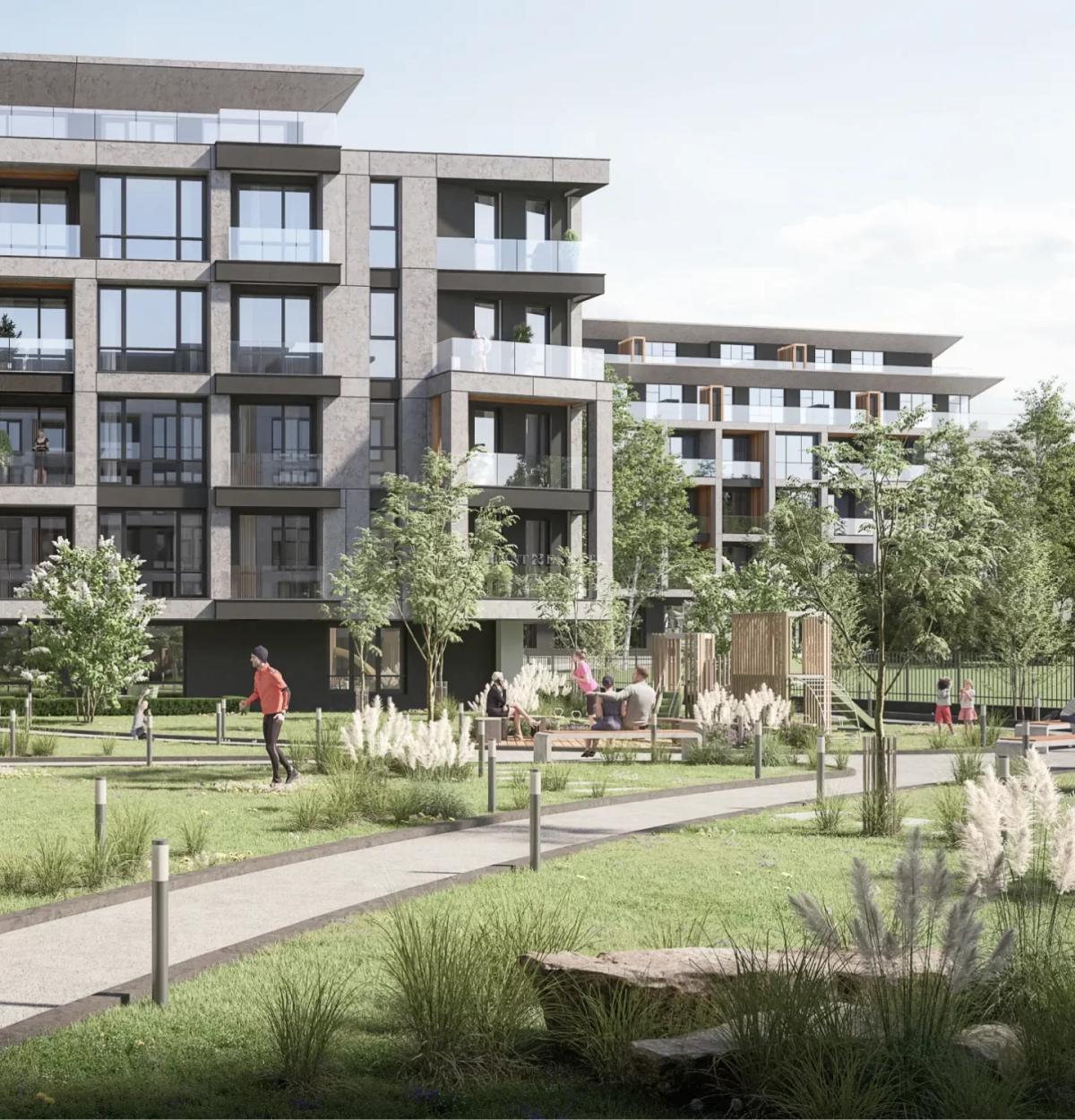 Available units include one-, two-, and three-bedroom apartments in a variety of sizes and layouts. For those seeking something special — maisonettes with roof windows and attic spaces, as well as ground-floor apartments with private gardens — the perfect setting for a green oasis or cozy outdoor lounge.