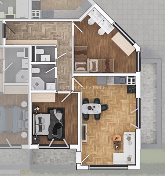 • Walls and Ceilings: Durable machine-applied plaster (turbosol) for longevity and aesthetics; smooth cement screed for flooring base.