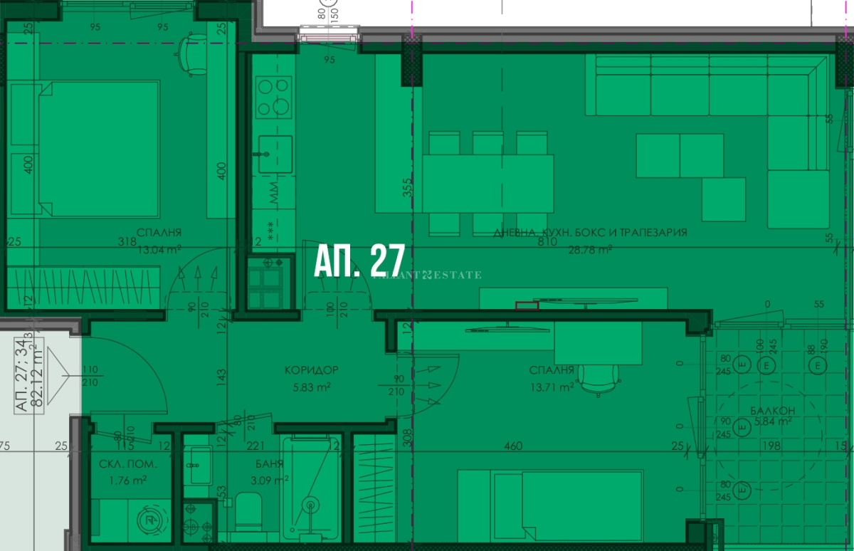 With a total built-up area of 14,300 sq.m, this residential complex embodies a modern architectural vision and thoughtfully designed functionality. It consists of two buildings — an 8-story structure (Entrance A – 8,700 sq.m) and a 4-story structure (Entrance B – 5,700 sq.m), offering a total of 82 apartments with optimal layouts, including one-bedroom, two-bedroom, and three-bedroom units.