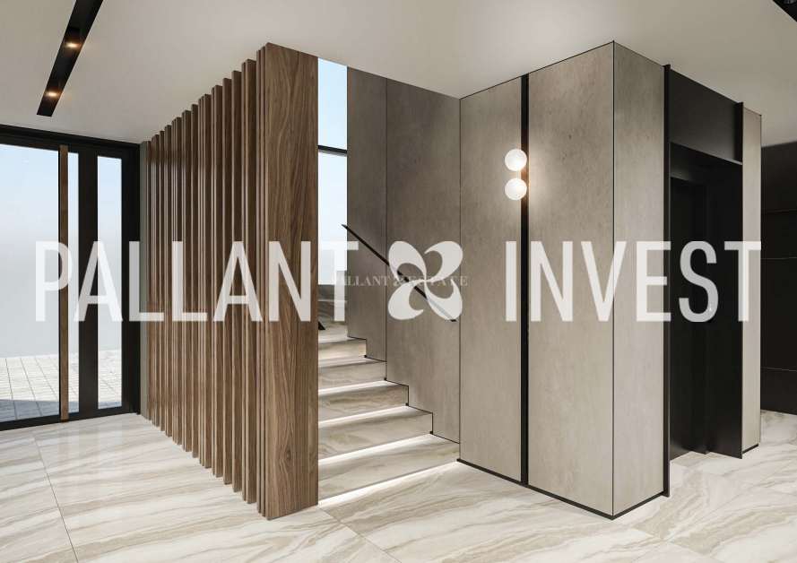 Luxurious finishing of staircases and lobbies with granite or marble flooring, gypsum plaster walls and ceilings, high-quality elevators.