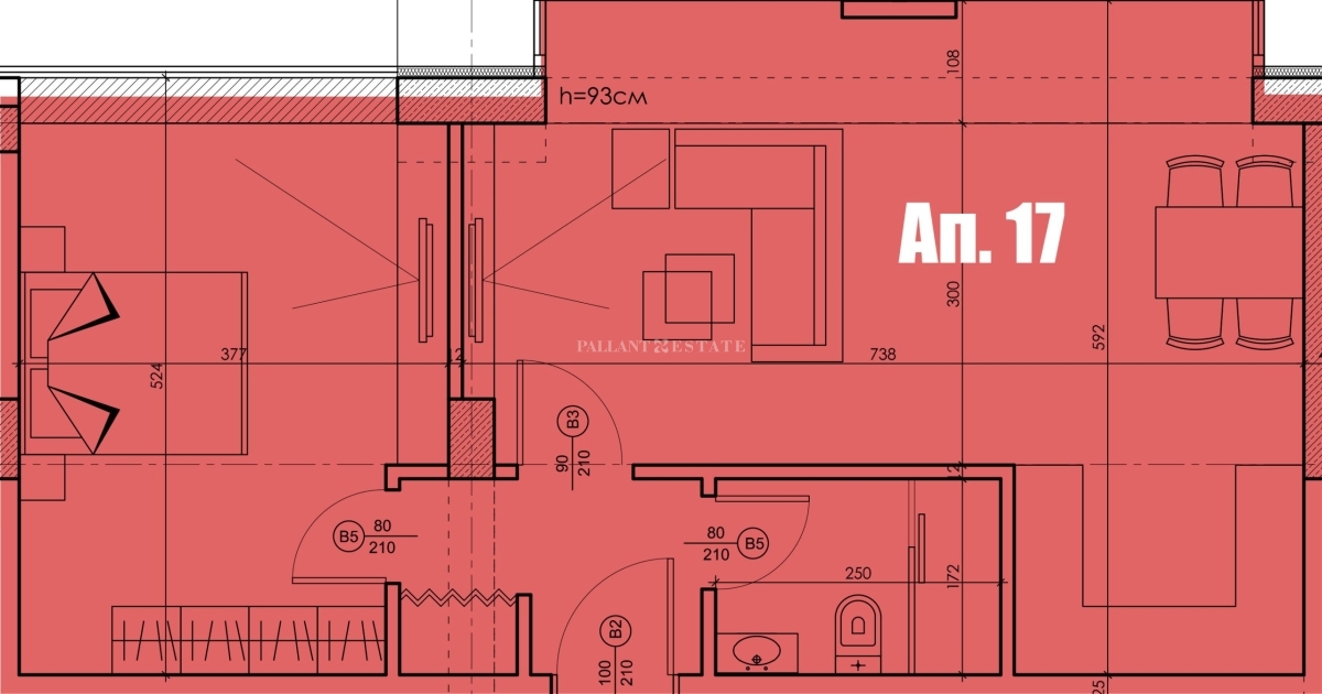 Three rooms apartment | 5 | 22 | 100.44 sq. m. | 82.84 sq. m. | 17.60 sq. m. | 1950.00 EUR / кв.м | 195 858 EUR | |||