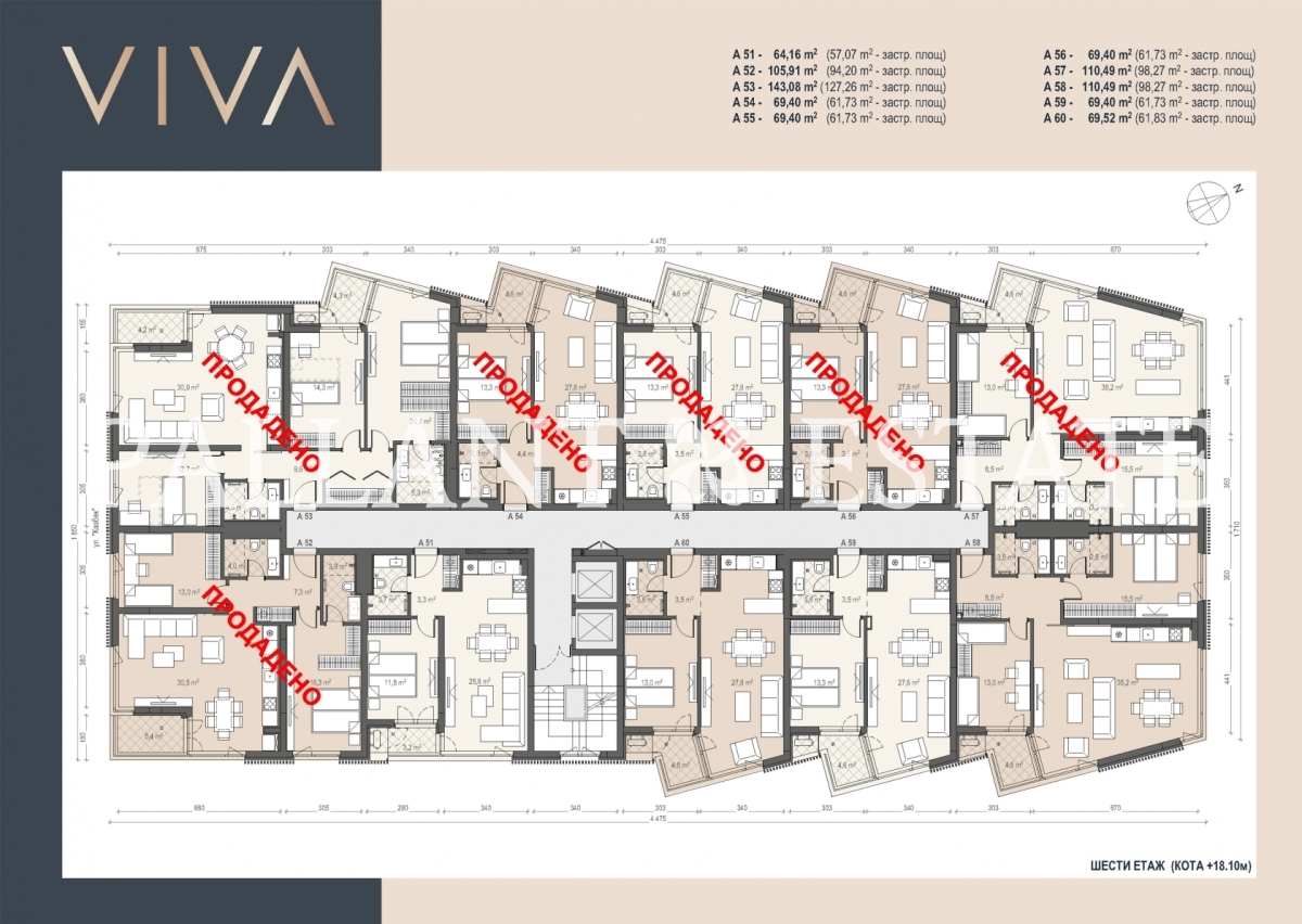 Three rooms apartment   South, Northeast   1   1   8   110.49 sq. m.   98.27 sq. m.   12.22 sq. m.   Unfurnished   2316.95 EUR / кв.м 256 000 EUR