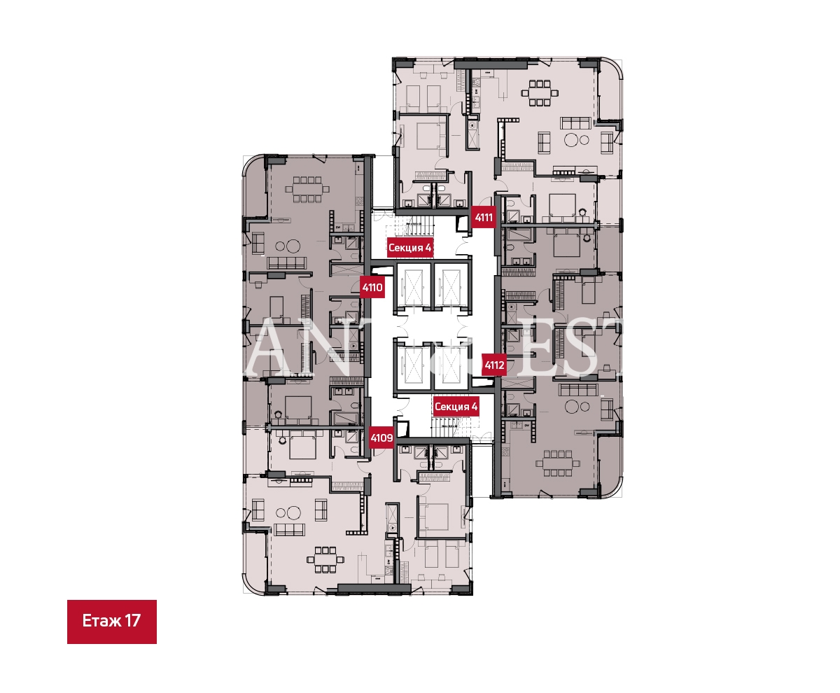 Many rooms apartment   Юго-восток   4   19   Ап.4117 по запитване   380.63 sq. m.   330.98 sq. m.   49.65 sq. m.   Unfurnished