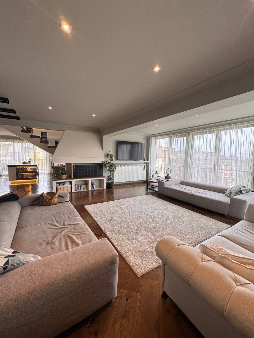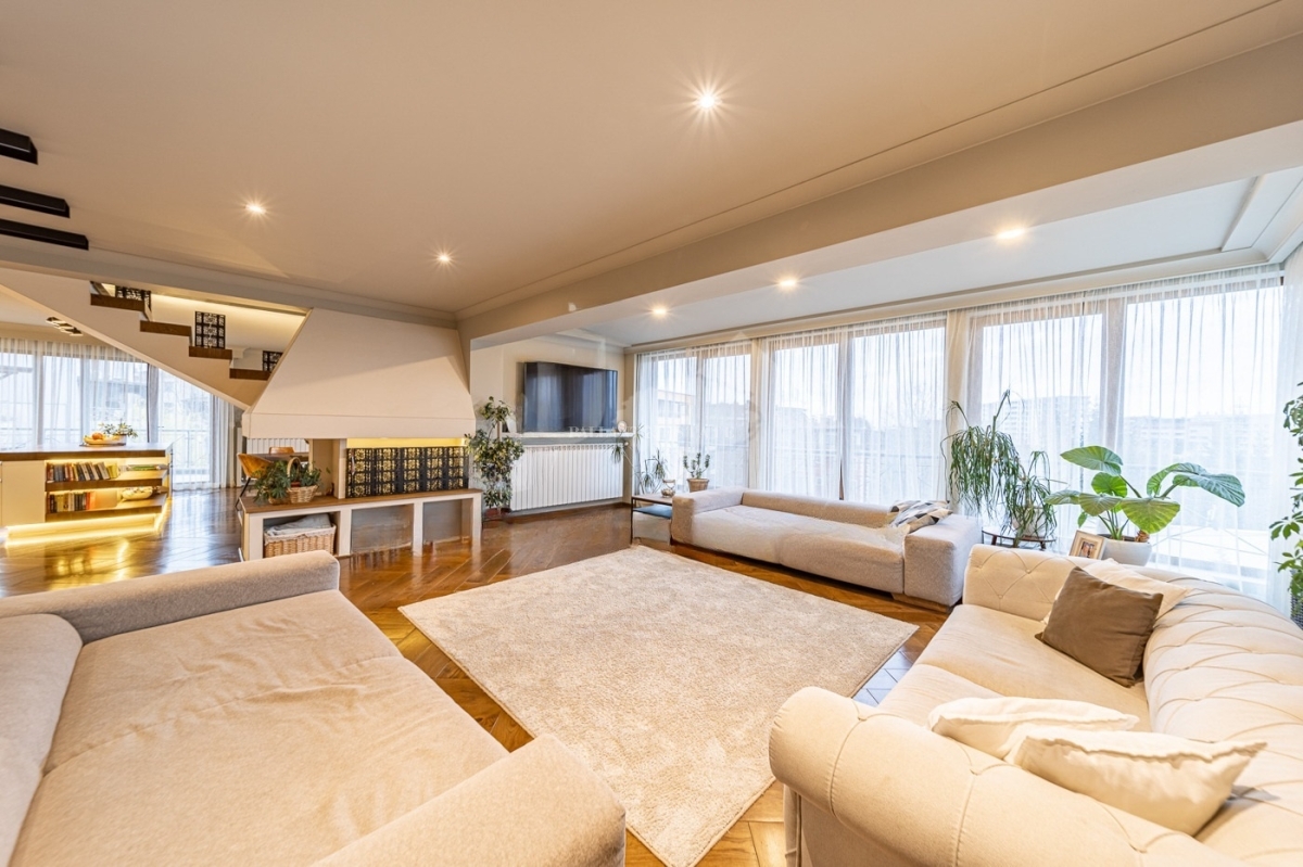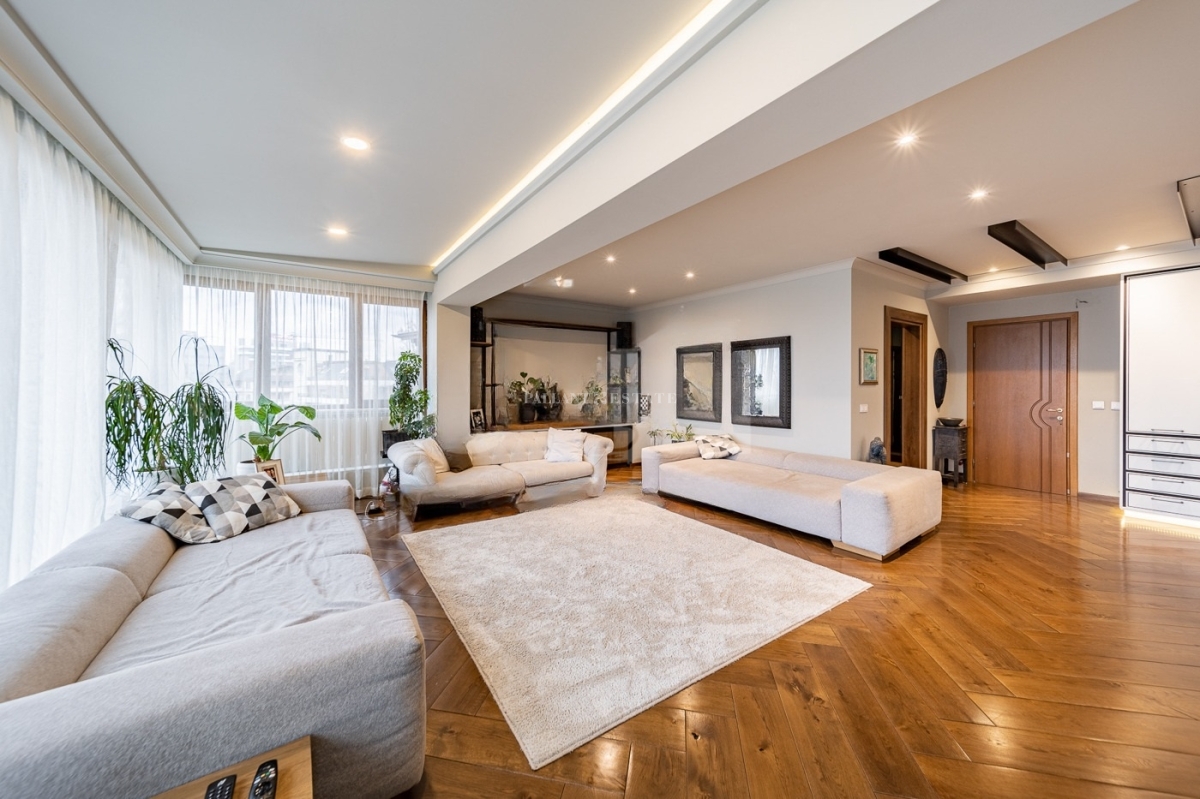The duplex has been finished with exquisite taste, using only the highest quality materials that combine modern aesthetics with classic elegance. Large panoramic windows reveal breathtaking views of Vitosha Mountain, while the living room opens directly onto a spacious terrace.