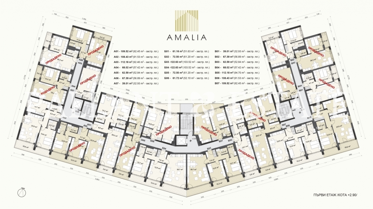 5340   Three rooms apartment   South   А   2   А 09   107.01 sq. m.   91.53 sq. m.   15.48 sq. m.   Unfurnished   1672.74 EUR / кв.м 179 000 EUR